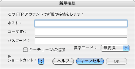 | パスワード | 「ホームページエリアレンタルサービス 登録完了のお知らせ」に記載されているあなたのFTPパスワードを半角英数字で入力します。 パスワードは「*」で表示されて見えません。 |