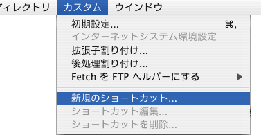 メニューバーの【カスタム】→【新規ショートカット…】の順にクリックします。