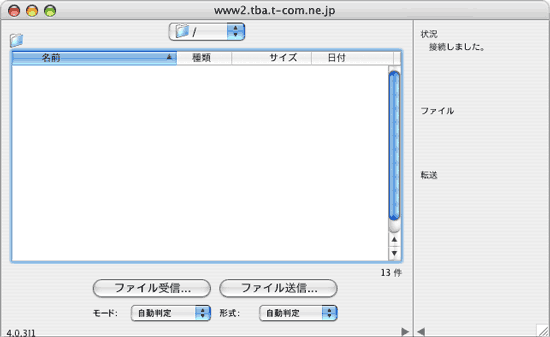 【www2.***.t-com.ne.jp】(「*」はお客様毎に異なります)ウィンドウが開き、転送先サーバへの接続を確認します。